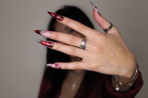 Marketing and business innovation and entrepreneurship student Latda “Meme” Sanamixay shows off the custom nails she designs and produces. (Photo: Van Tran)